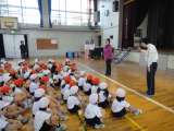 おもちゃフェスティバルで作るおもちゃや、必要な材料について1年生に説明しました。...