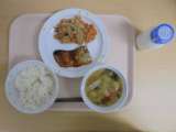 【今日のメニュー】 ごはん 牛乳 鮭の照り焼き 切り干し大根の煮物 キャベツの...