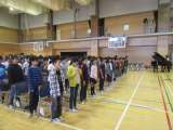たっぷり練習した後は、いよいよ3校合同で歌声を披露します。 中学生の指揮・伴奏...