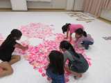 絵の具をポンポンと、スタンプのように使い、色をつけました。 楽しそうに...