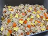 【今日のこんだて】 牛乳 三色丼 あんかけ汁 【食材の産地】 米・・・埼...