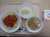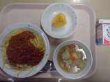 【今日のこんだて】 牛乳 スパゲティミートソース コンソメスープ 柿 【食...