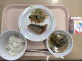 【今日のこんだて】 牛乳 ごはん 鯖の七味焼き 野菜ののりあえ 芋煮 【食...
