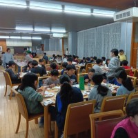 朝会後、朝食までの時間は布団の片付けをしています。シーツを外したり、布団をたたん...