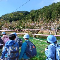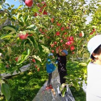 関りんご園に到着しました。到着後にりんごジュースを飲み、お楽しみのりんご狩り。よ...