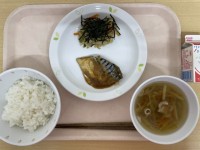 【今日の献立】 牛乳 ごはん さばの味噌煮 野菜ののりあえ 沢煮椀【食材の産地】...