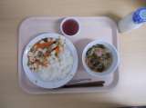 【今日のメニュー】 シーホーどうふどん 牛乳 中華スープ ぶどうぜりー 【食...
