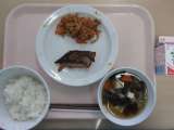 【今日のこんだて】 牛乳 ごはん 魚の西京焼き 野菜ののりあえ 田舎汁 【...