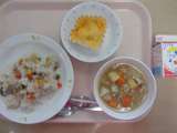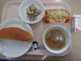 【今日のこんだて】 牛乳 鶏ごぼうピラフ キッシュ レンズ豆のスープ 【食...