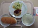 【今日のこんだて】 牛乳 コッペパン ハンバーグ フレンチサラダ じゃが芋のポ...