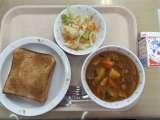 【今日のこんだて】 牛乳 シナモントースト チキントマトシチュー キャベツと大...
