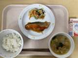 【今日のこんだて】 牛乳 ごはん 魚の変わりソース 梅のり和え 油揚げの味噌汁...