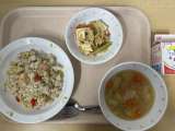 【今日のこんだて】 牛乳 ナシゴレン ガドガドサラダ レンズ豆のスープ ...