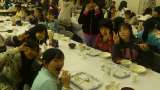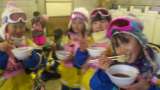 三日目の朝食です。 昨夜はどの子もぐっすり眠れたようです。 ゲレンデは少し吹雪...