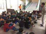 午前の講習は、宿舎の2階ホールで行われています。 スキー学校校長から写真のような...