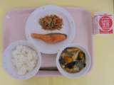 【今日のこんだて】 ごはん 牛乳 鮭のゆうあん焼き れんこんのきんぴら かぼち...