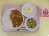 【今日のこんだて】 チキンカレーライス 牛乳 野菜の中華風味 りんご 【食材...