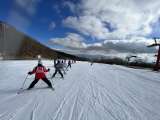 ?午後のレッスンでは、どのグループも何本も滑っていました。今日が初めてのスキー体...