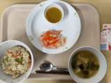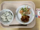 【今日のこんだて】 牛乳 わかめごはん おからコロッケ ツナと枝豆のサラダ ...