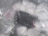 小さい袋にジュースを入れ、それを氷と一緒にビニール袋に入れました。 氷に塩を振り...
