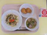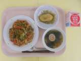 【今日のこんだて】 ソース焼きそば 牛乳 中華スープ スイートポテト 【食材...