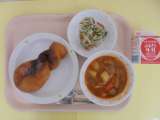 【今日のこんだて】 あげパン(ココア) 牛乳 ボルシチ 大根とツナのサラダ ...