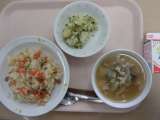 【今日のこんだて】 牛乳 ごはん 魚の幽庵焼き 味噌ドレサラダ きりたんぽ汁 ...