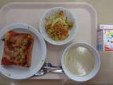 【今日のこんだて】 牛乳 ピザトースト じゃが芋のハニーサラダ コーンポタージ...