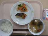 【今日のこんだて】 牛乳 ごはん 鯖の塩焼き 和風サラダ 呉汁 【食材の産...