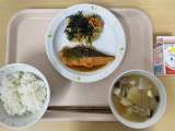 【今日のこんだて】 牛乳 ごはん 魚の幽庵焼き 梅のりあえ 豚汁 【食材の...