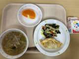 【今日のこんだて】 牛乳 味噌ラーメン ジャンボぎょうざ わかめサラダ せとか...