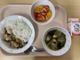 【今日のこんだて】 牛乳 ルーローハン わかめスープ フルーツポンチ 【食...
