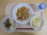 【今日のメニュー】 こぎつねごはん 牛乳 けんちん汁 いももち 【食材の産地...