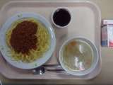 【今日のこんだて】 牛乳 スパゲティミートソース コンソメスープ ぶどうゼリー...