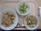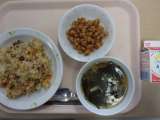 【今日のこんだて】 牛乳 チャーハン わかめスープ 大豆とじゃこの甘辛揚げ ...