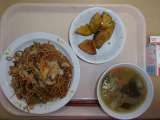 【今日のこんだて】 牛乳 ソース焼きそば 中華スープ 大学芋 【食材の産地...