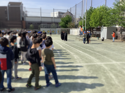 先日、4月12日(水)に2年生が1年生に校庭の案内をしました。 2年生は1年生に...