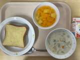 【今日のこんだて】 牛乳 はちみつレモントースト クリームシチュー フルーツポ...