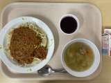 【今日の給食】 牛乳 スパゲティミートソース コンソメスープ ぶどうゼリー ...