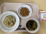 【今日のこんだて】 牛乳 チャーハン 煮豆 わかめスープ 【食材の産地】 ...