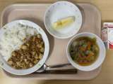 【今日のこんだて】 牛乳 マーボー豆腐丼 春雨スープ りんご 【食材の産地...