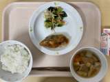 【今日のこんだて】 牛乳 ごはん 魚のバーベキューソース お浸し けんちん汁 ...