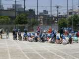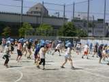 4年生は元気いっぱい!見ている側も元気をもらいます。大玉ころがしも、みんなで協力...