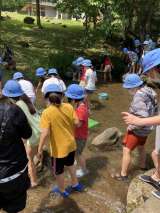 初めての体験にびっくりの子供たちです。おたまじゃくしやカエルも初めてだそう。