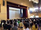 全校朝会では、今週行われる新潟県柏崎市立日吉小学校との交流会について話しました...