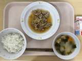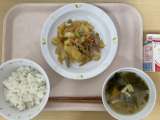 【今日のこんだて】 牛乳 ごはん 豚肉の生姜焼き 厚揚げとかぼちゃの味噌汁 ...