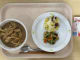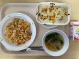 【今日のこんだて】 牛乳 チキンライス ポテトグラタン 野菜スープ 【食材...
