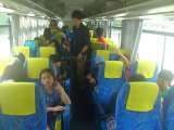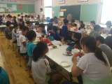 日吉小学校に到着! バスがつくと校庭では、日吉小全校の児童、先生方、PTAの方々...