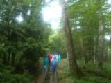 戦場が原コースのハイキングがスタート。 小雨の神秘的な森を進みます。