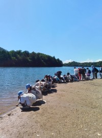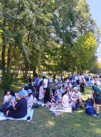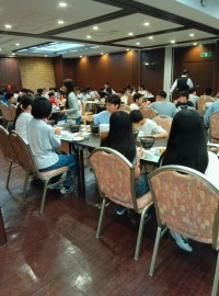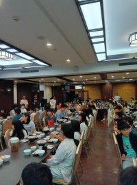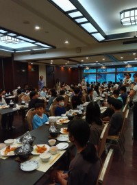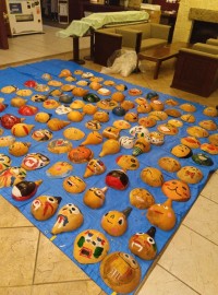 夕食後はふくべ細工体験です。チョークで下書きをして、絵の具を使って各々考えたデザ...